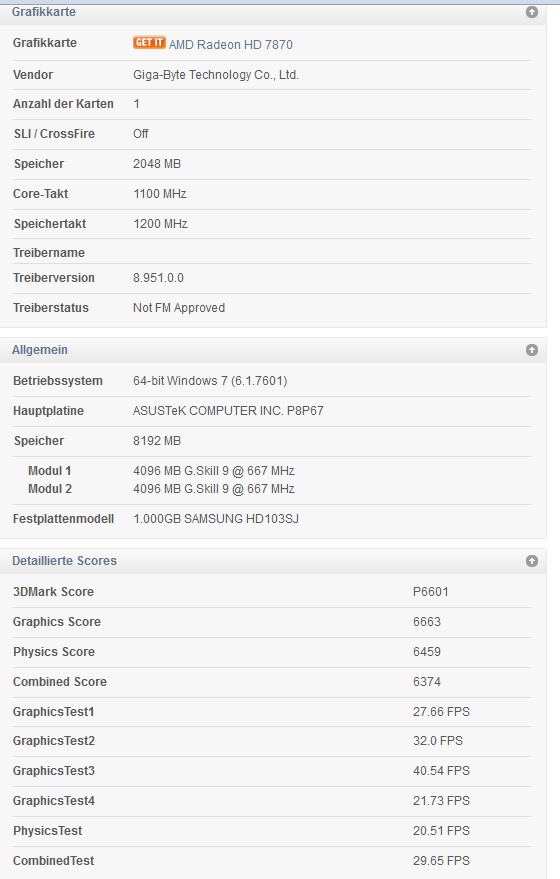 Mit den Benchmarks von verschieden Seiten kann ich mein Ergebnis nur 1 mal wiederfinden, aber die sind alle sowieso extrem verschieden :/