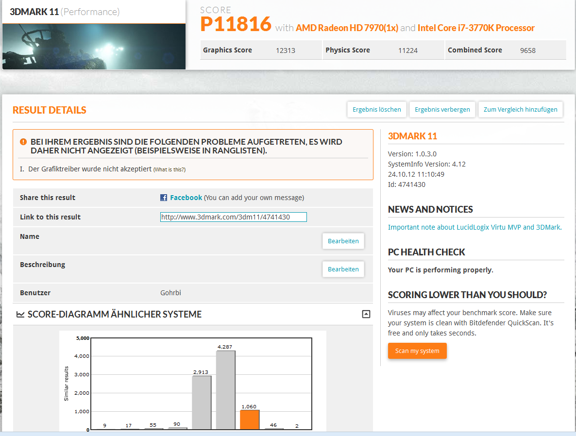 An was kann das liegen ? Und natürlich die entscheidene frage : Sind die 5885 Pkt bei Graphic Inordnung ?