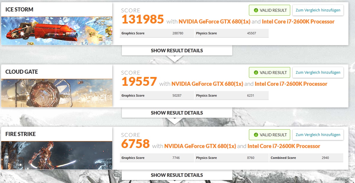 Hi, hab mit ner GTX770 und nem i5 2500K@3,6ghz nur 6870 Punkte, ist das in Ordnung oder muss ich mir sorgen machen?