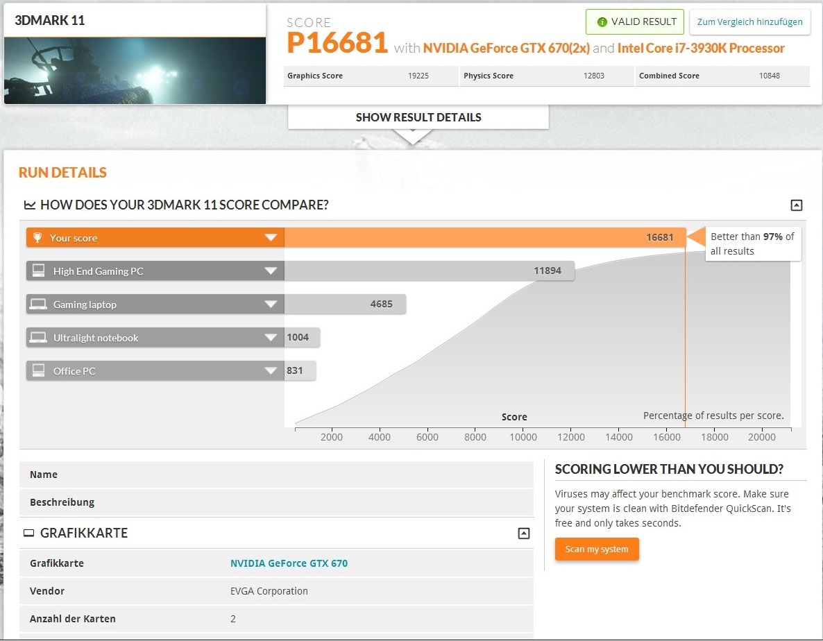 hatte mal wieder lange weile und meine 670er noch nen bissl geclocked, beim 11er Bench wunderbar(http://www.3dmark.com/3dm11/7748620), brachte noch bissl was, aber kleinkram.