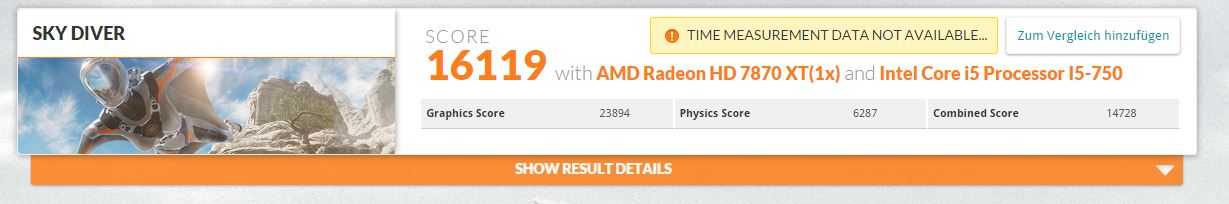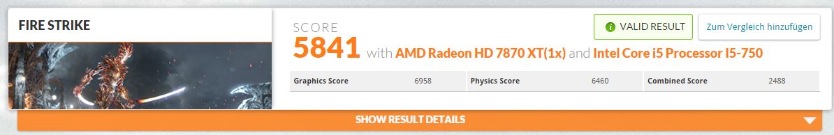 DAS sind nur Zahlen & wichtig sind ja immer noch deine Games mit Setting_X & kein Benchwert. Wobei ...für die alte Hardware noch respektabel & knappe 7K GPU-Score im FS ist für eine 7870er ein guter Wert. :-)