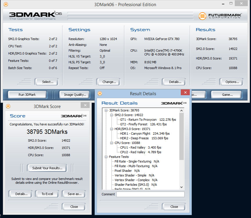 Ich denke mal bei dem alten Bench zählt vorwiegend Takt & da können "neue Instruktionen" vom Haswell nicht ganz ihre Muskeln ausspielen.Übrigens habe ich noch einen 3DMark06 mit dem alten 4770K gefunden, der ein paar Punkte besser ist, allerdings mit 4,6 GHz