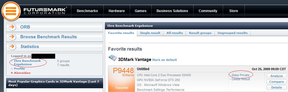 Ja, das Ergebnis ist gut. Hattest du den Link von der Seite die 3DMark beim Hochladen öffnet genommen? Das geht so nicht. Du musst erst links zu deinen Ergebnissen und dann rechts auf "make private" klicken, dann bekommst du einen Link, der funktioniert. Siehe Bild