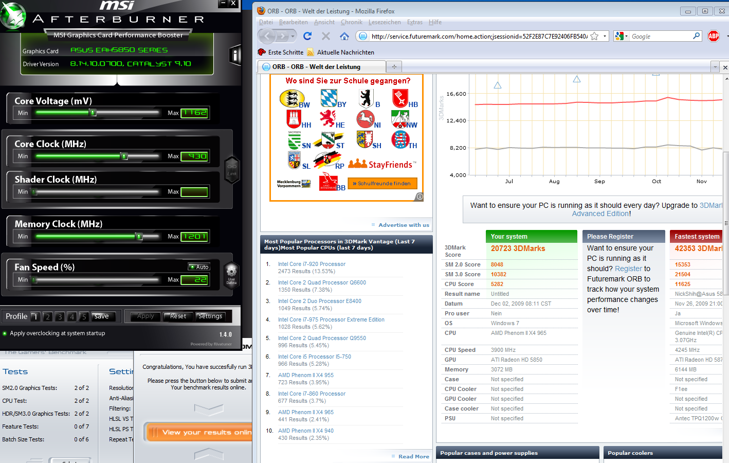 Hier mal zum Vergleich ne 5870 1000/1300 Phenom 940 4 GhzGohrbi schrieb:Hi, ich sehe, dass du 5870 hast. welche Takte bei GPU ?