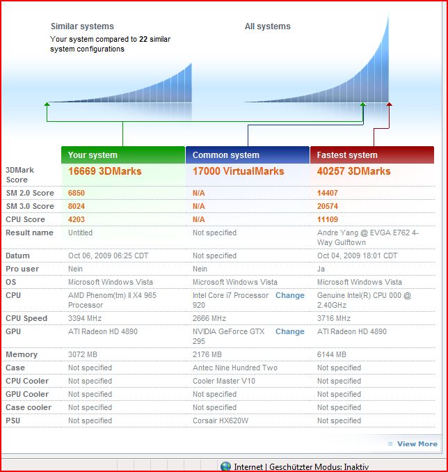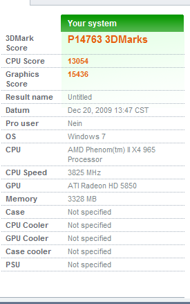Habe meinen Phenom II X3 zum X4 freigeschaltet und ihn auf 3,4Ghz laufen (wie 965) restliches system in der Signatur... wollte nun mal wissen ob das Ergebnis von 17510 3DMarks ok ist oder ob ein echter "965" mehr leistet
