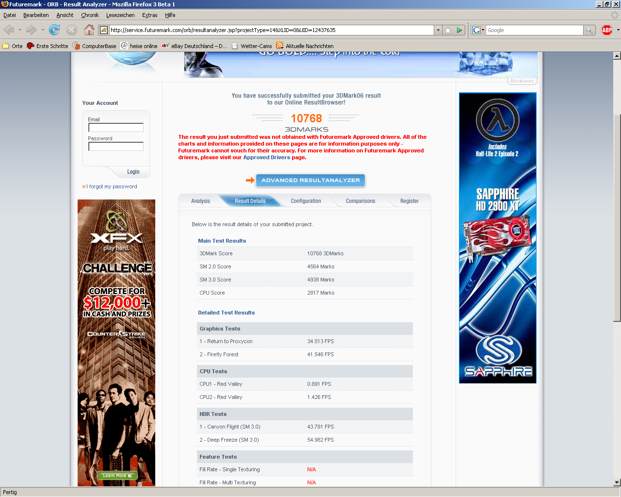 ich hab seit letzter Woche eine Sapphire HD 3870. Ich hab jetzt mal 3Dmark06 lufen lassen und bin auf 8700 Punkte gekommen. Ich finde das das ein bisschen wenig ist. Ich kenne mich in den Sachen ja nicht besonders aus, aber mit meine HD 2600 XT habe ich 4700 Punkte geschaft.