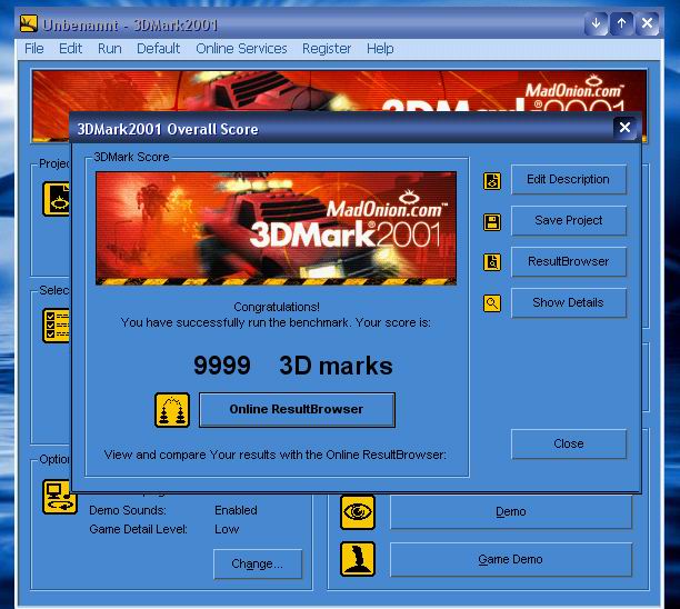Ich kriege aber bei 3d mark 2001 nur ca 7000 Punkte....