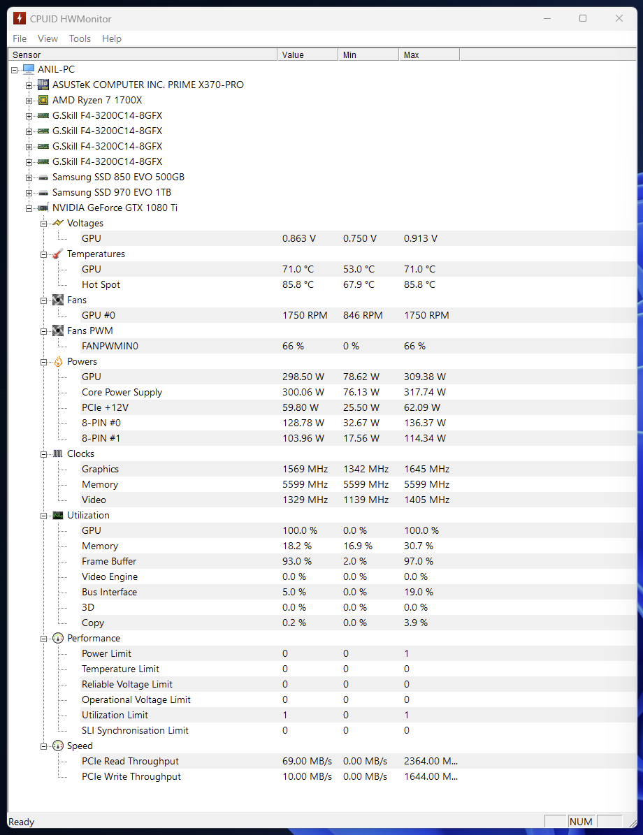 - SSD: Samsung SSD 970 EVO 1TB + Samsung SSD 850 EVO 500GB