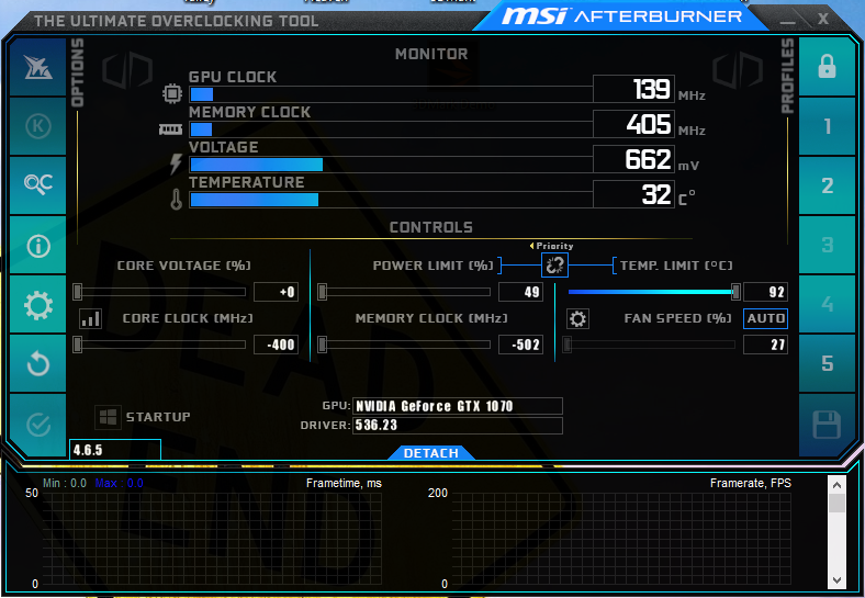 g) In MSI Afterburner und im BIOS sind keine OC Einstellungen gesetzt