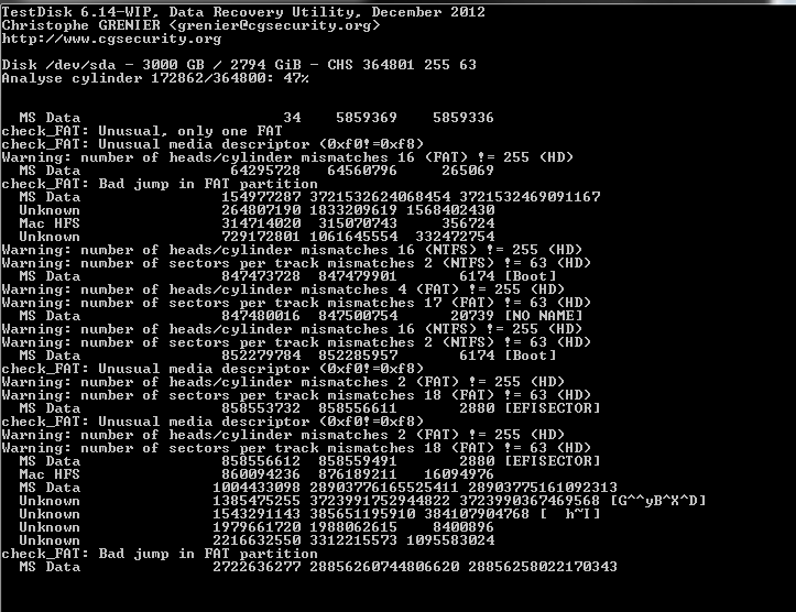 Eine Analyse mit TestDisk läuft zur Zeit.