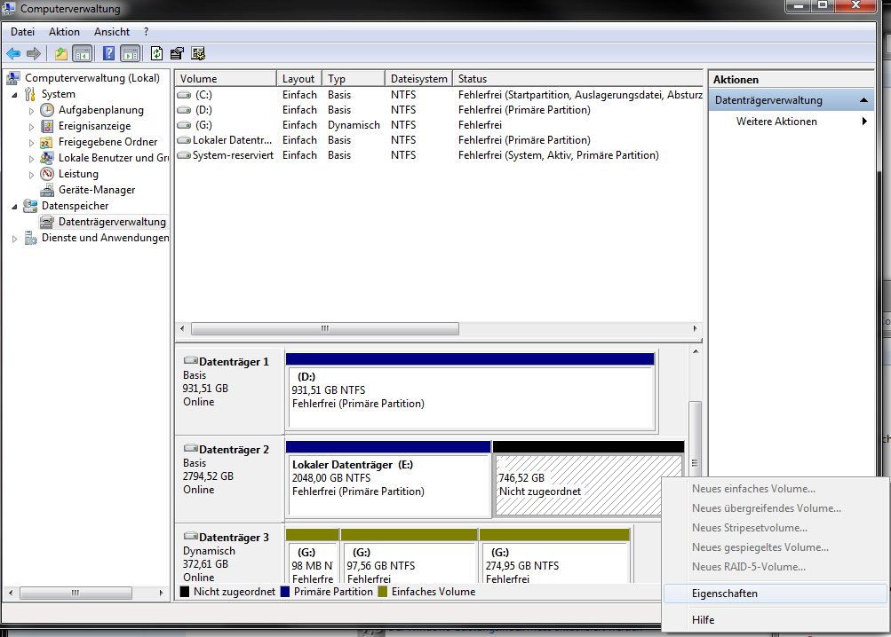 meine neue WD RED 3TB Festplatte eingebaut (2794,52GB) stellt mir nur 2048GB zur verfügung 746,52GB lassen sich nicht zuordnen und auch nicht löschen und dann das andere Volumen vergrößern.