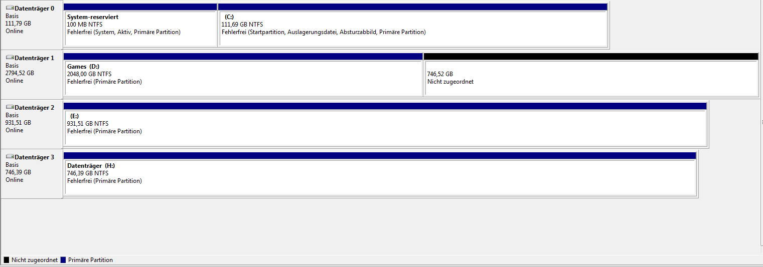 Der Datenträger "H" ist mein Restlicher 1TB (750gb). So sollte es dann aussehen "Siehe Bilder"