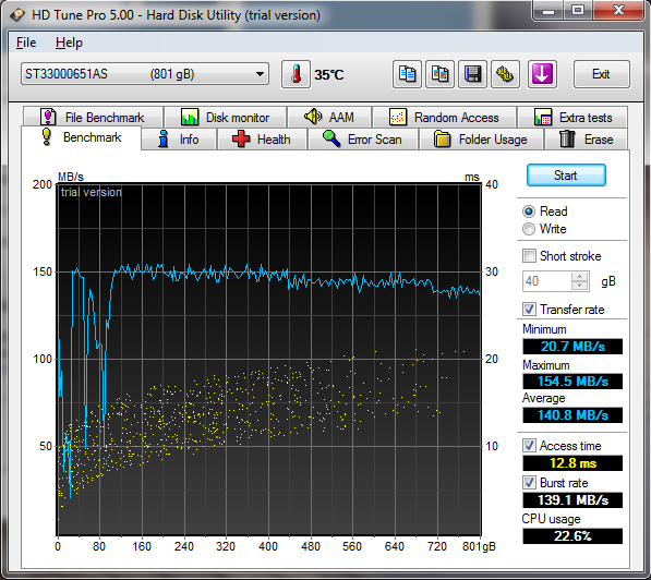Zuletzt habe ich versucht ca. 30GB auf die Platte zu kopieren, dabei ist der Rechner dann neu gestartet, anschliessend tauchte die Platte unter Windows 7 nicht mehr auf. Ich bin mir nicht mehr sicher, wie viel schon auf der Platte war, es könnte aber im Bereich so um die 2 TB gewesen sein. Die Platte hatte nur eine Partition, über die Gesamte Größe.
