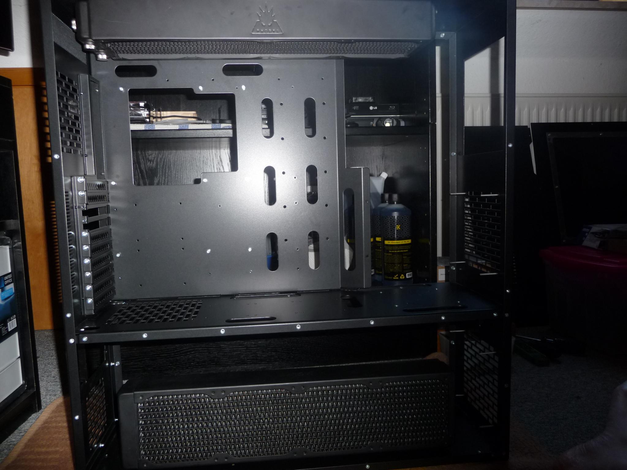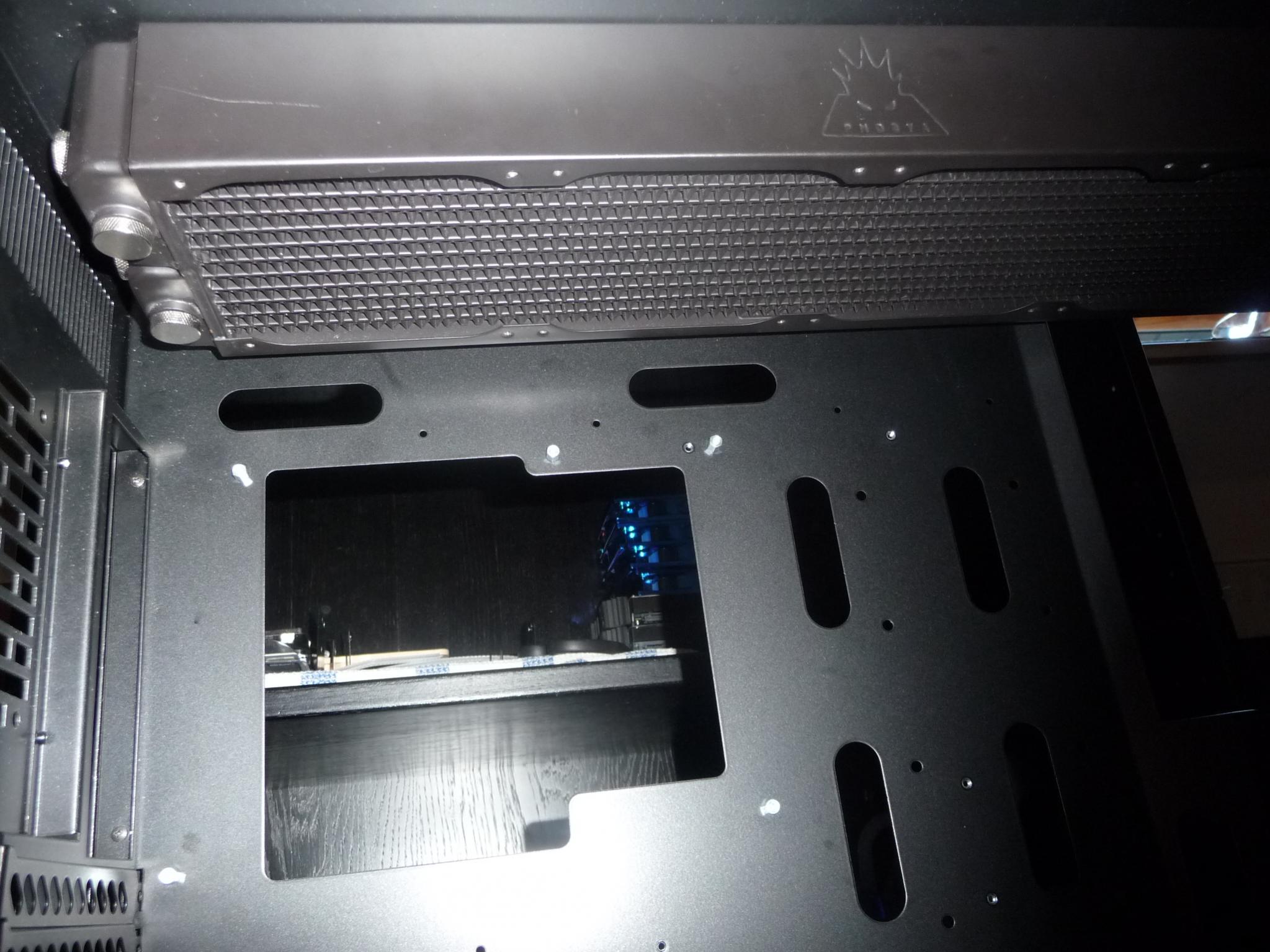ich bin beim Zusammenbauen einen Kompromiss eingegangen und habe vorerst nur zwei 480mm Radiatoren eingebaut - einen RX480 im "Keller" und einen G-Changer 480 im "Deckel". Auf dem RX480 sitzen acht NB PL2 @ 700rpm und auf dem G-Changer 480 sitzen vier Coolermaster R4 @ 700rpm.