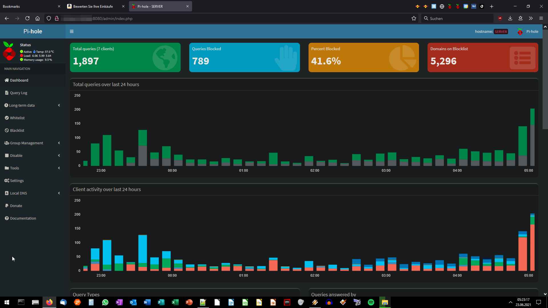 TOS- das TerraMaster-Betriebssystem - hab ich mir erst garnicht angeschaut - der interne USB-Stick ist abgezogen und liegt in einem Plastiktütchen im Gehäuse, noch im Werkszustand. TOS kann mit einem Debian mit nativ installiertem OMV und pi-hole eh nicht mithalten, da keinerlei Container mitgeschleift werden müssen und alles direkt auf dem OS läuft. Debian ist ohne grafiksche Oberfläche installiert und wird per Browser und SSH administiriert.