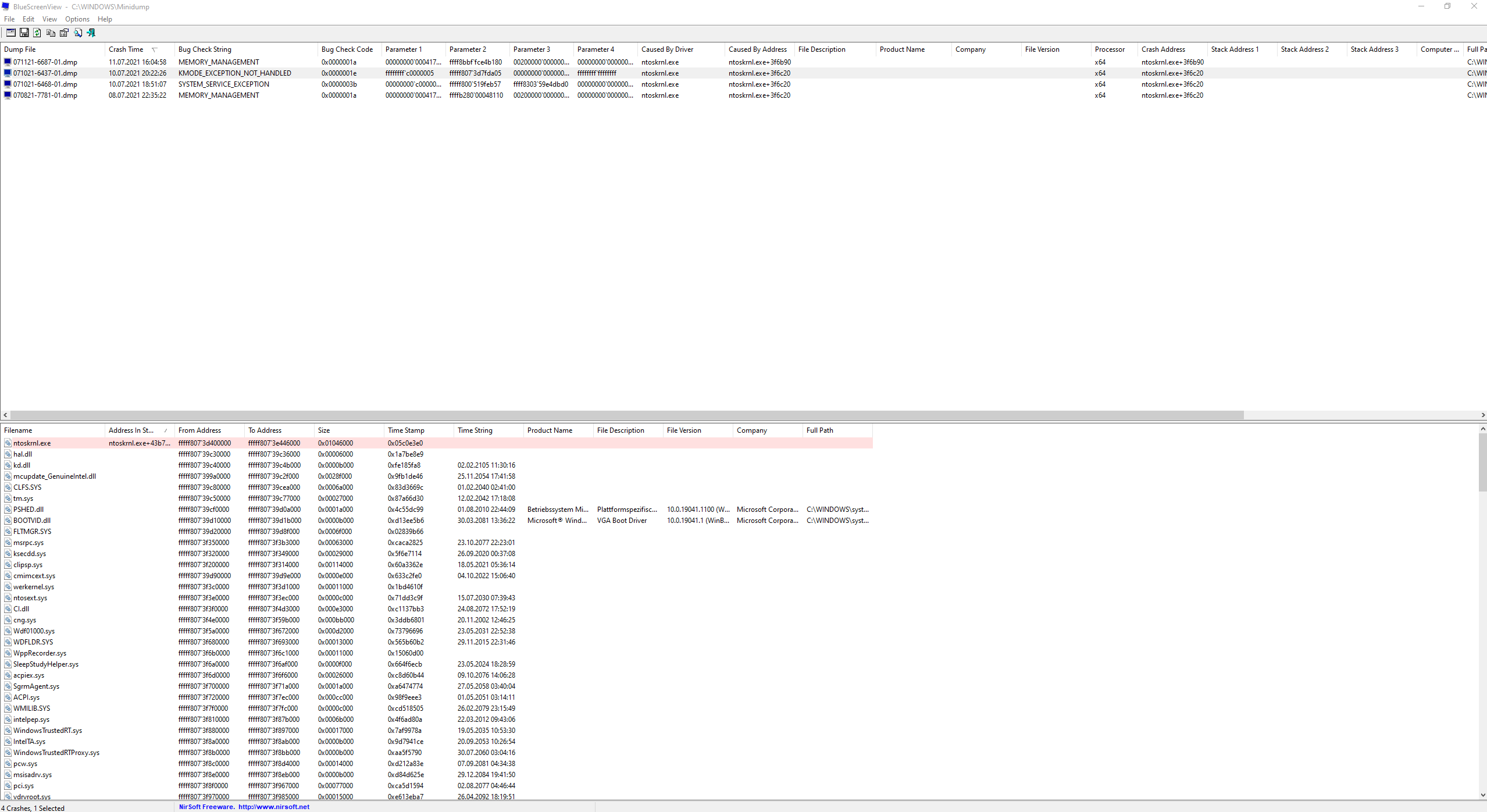 Ich habe mir jetzt auch mit "BluescreenView" mal die Fehlermeldungen angeschaut und hänge einen Screenshot hier an.