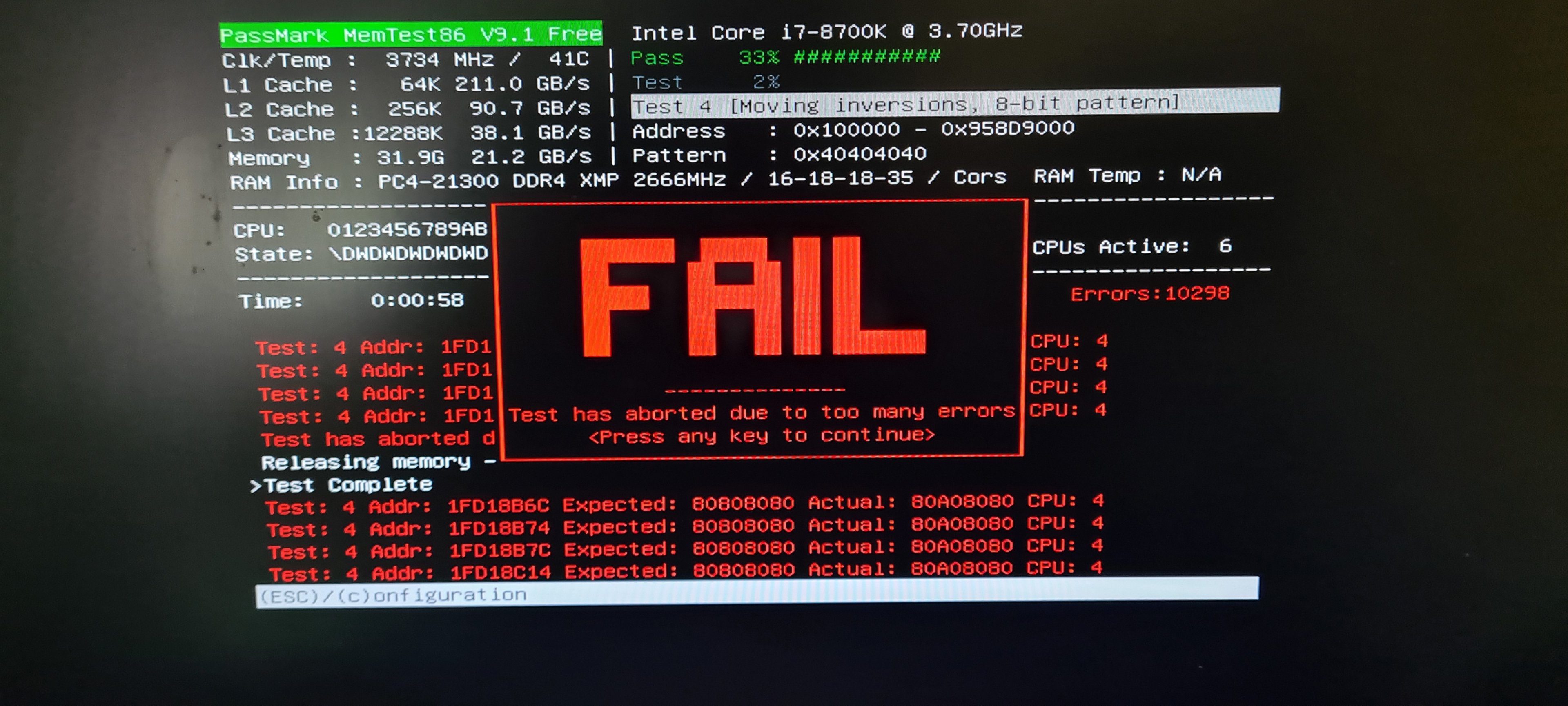 "Der Arbeitsspeicher des Computers wurde von der Windows-Speicherdiagnose überprüft, und es wurden Hardwarefehler festgestellt."