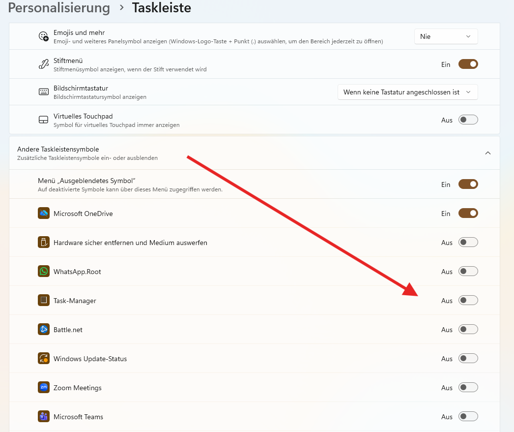 Du musst nur genügend Icons in der Taskleiste haben: