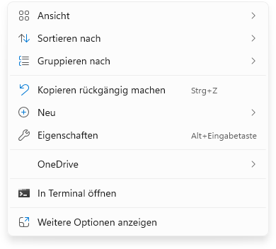 Shift + Rechtsklick öffnet dir das alte Kontextmenü.