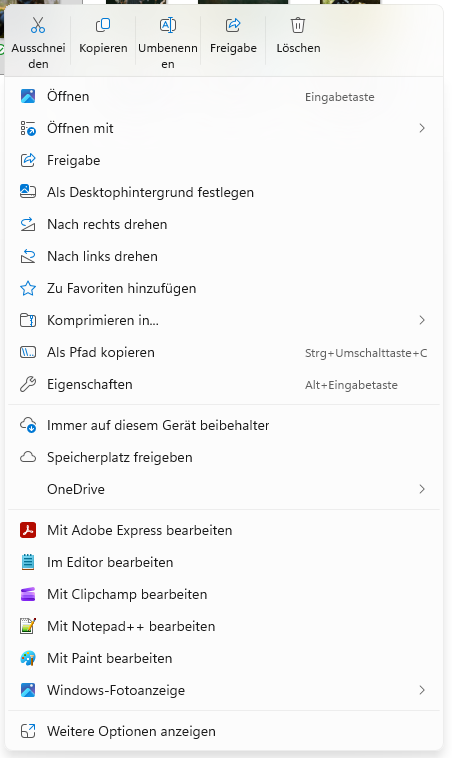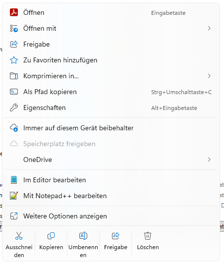 Das Kontextmenü scheint sich abhängig vom Dateityp anzupassen.