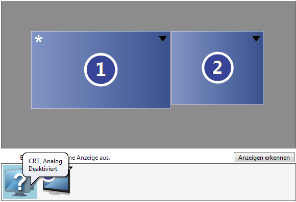 1x 1280x1024 (erweitert) per aktiver Displayport-DVI Adapter an Displayport --> läuft während des Bootens (Windows Logo etc erscheint). Nach dem Hochfahren schaltet sich der Monitor jedoch ab und wird dann weder bei den Windows Bildschirmeinstellungen, noch im AMD Catalyst Control Center erkannt.