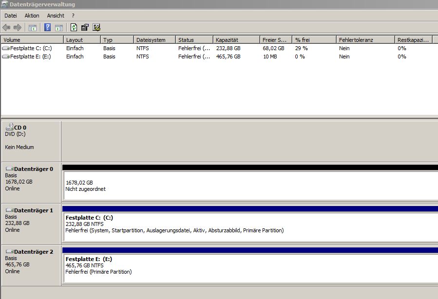 Die Datenträgerverwaltung erkennt die Platte, bietet mir aber nur exakt 1677,90 GB an.