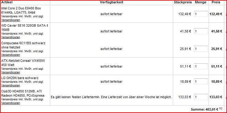 Immer wieder gerne, kannst die Sachen ja auch bei Geizhals oder so suchen und dann dort bestellen, wo es am günstigsten Ist.