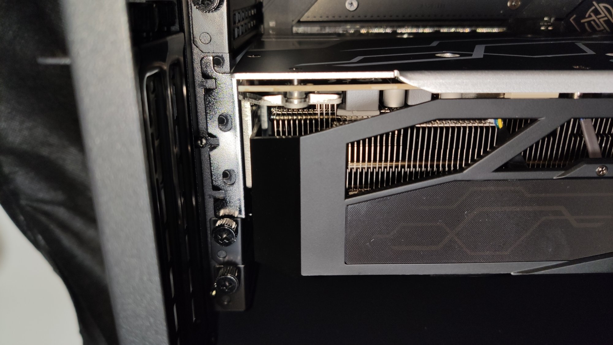 Ich baue gerade meinen neuen PC zusammen, aber bekomme die Grafikkarte nicht 100% ganz in den PCIe slot weil rechts die Klammer schon aufliegt und ich nicht weiter runterdrücken kann.
