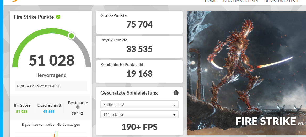 so mit na 4090 komm ich haargenau auf die Werte einer 4080, Punktlandung leider nur auf 4080 Niveau