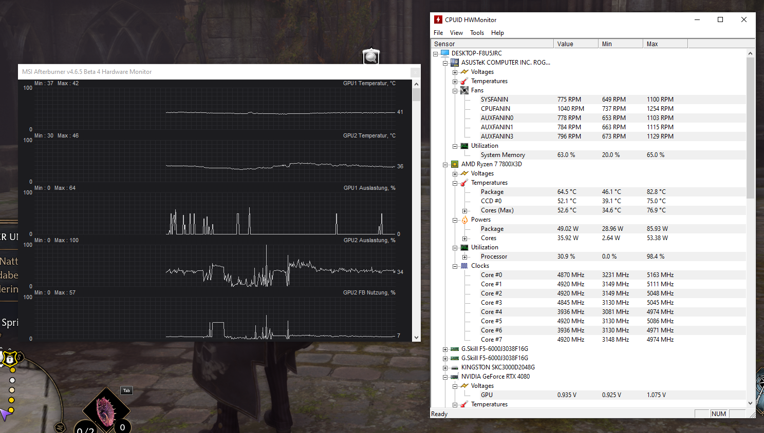 @00Julius @Skudrinka @slrzo Habe jetzt mit MSI After Burner gemessen, keine Ahnung wieso aber GPU 1 ist meine integrierte und GPU 2 ist scheinbar die dedizierte, das sind die Ergebnisse bei Hogwarts Legacy mit allem auf Ultra und Ray Tracing - Auflösung ist 1920x1080 .. CPU läuft auf 82 Grad