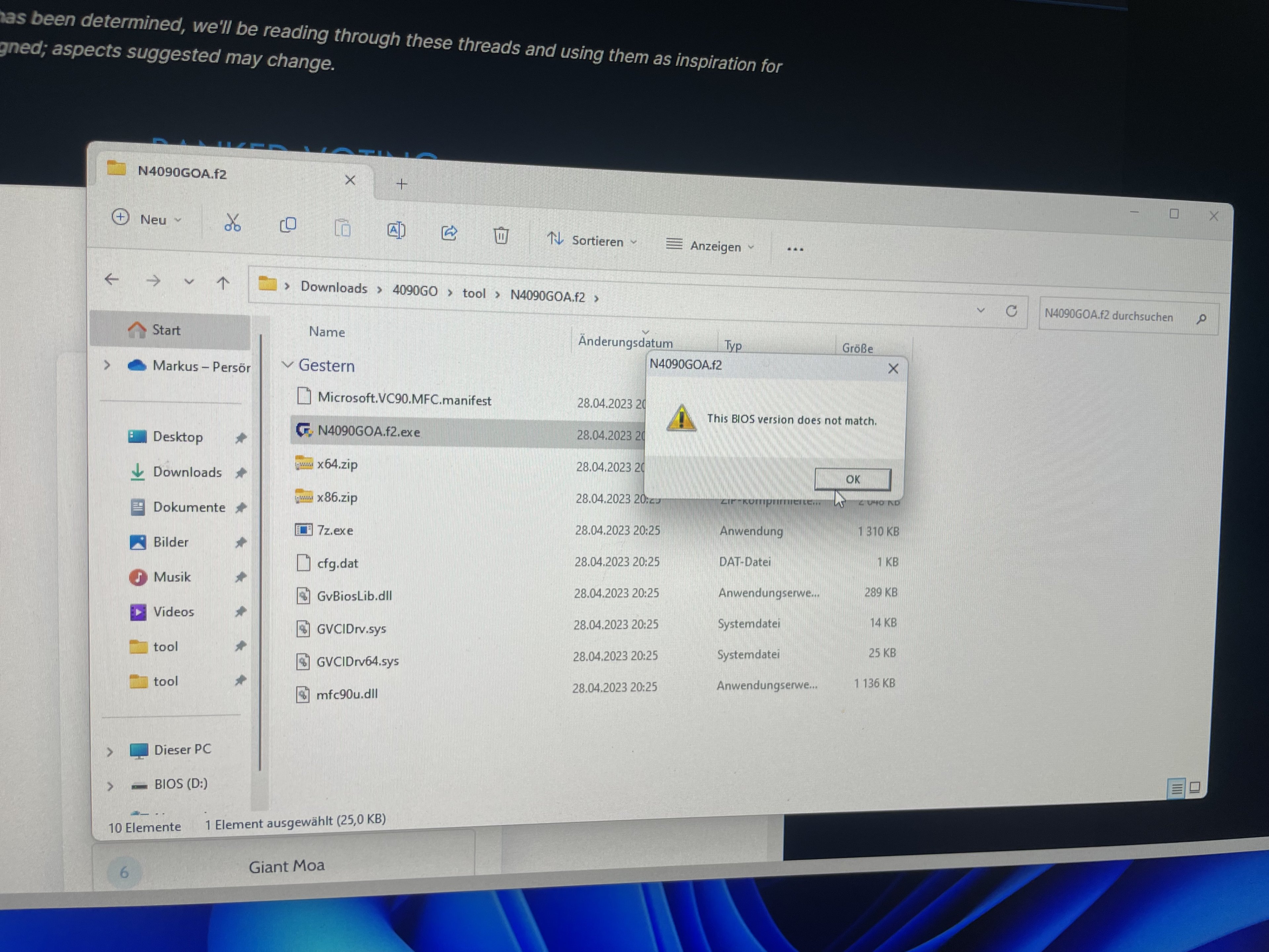 Firmware für Graka (von Gigabyte bezeichnung F2) --> lässt sich ausführen da anscheinend das Bios nicht passt