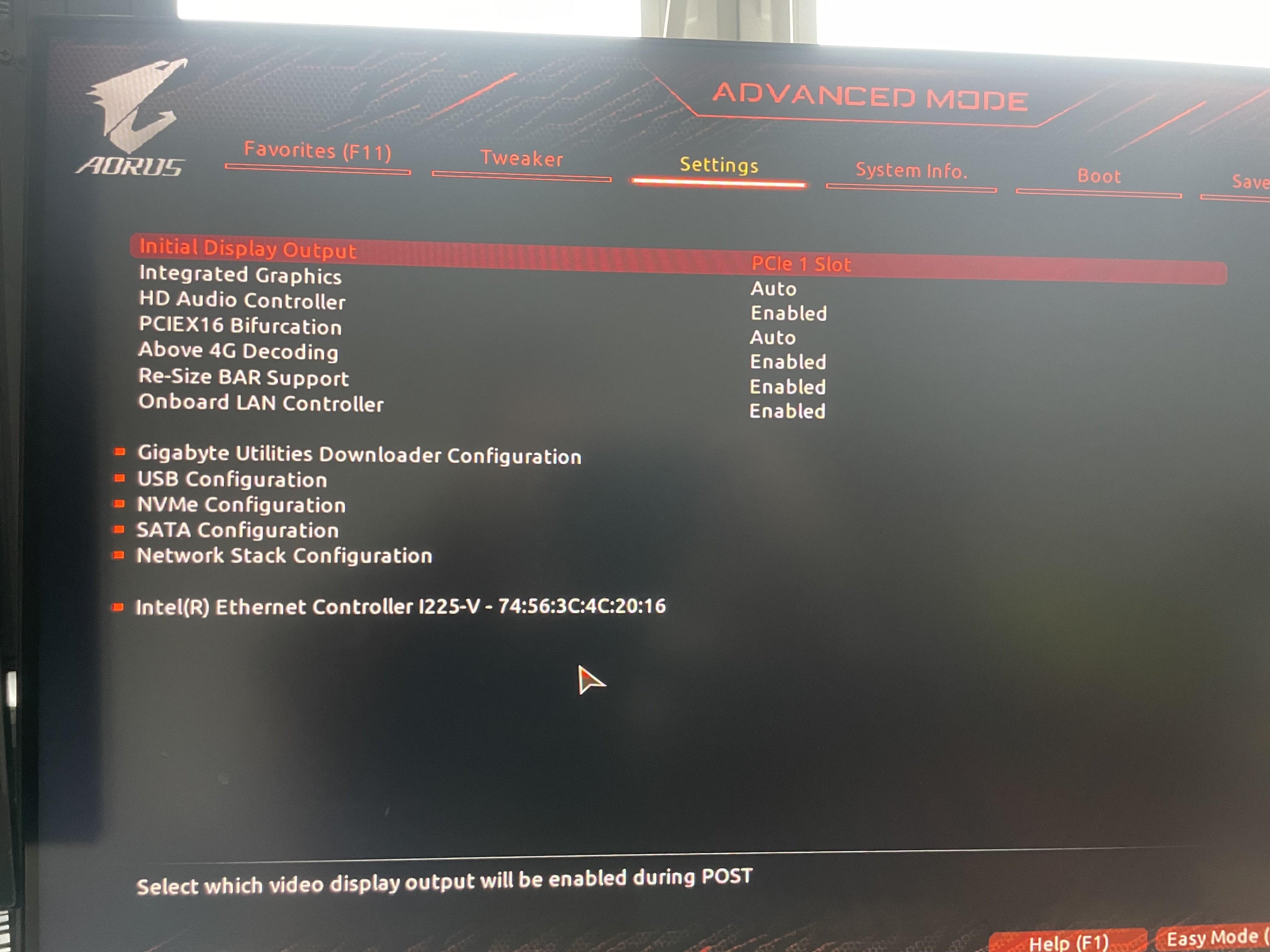 Bios Einstellungen: Graka aktuell im ersten Slot (HDMI über Mainboard da sonst kein Bild)