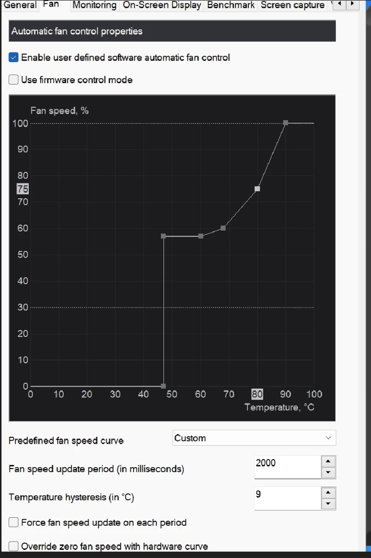 hier habe ich etwas gefunden, es wird empfohlen die Lüfterkurve so einzustellen, das kein Punkt zwischen