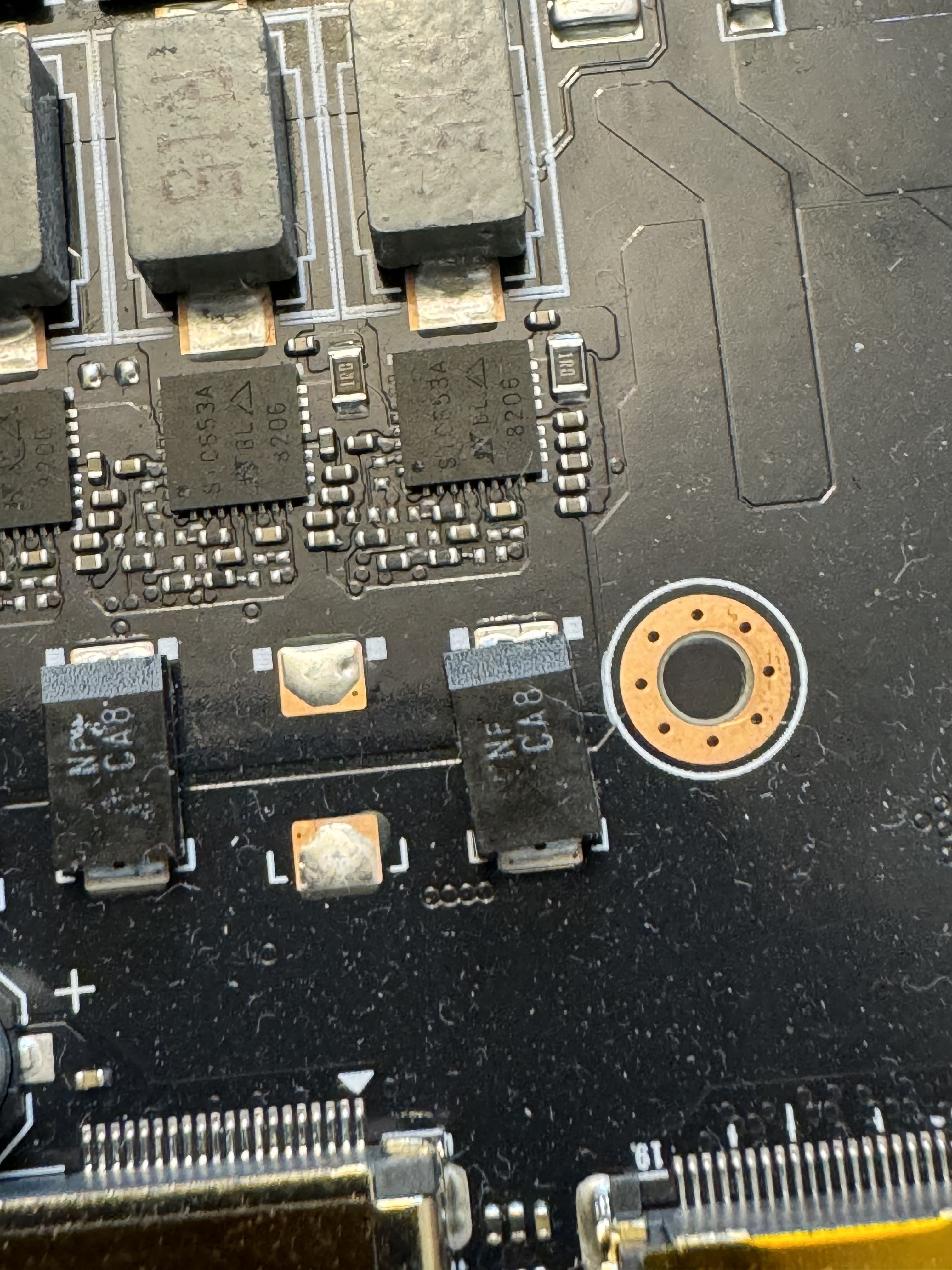 Hallo, habe hier eine 4090 Gigabyte Master mit einem Kondensator der pro Beinchen gleich an zwei Stellen halb abgerissen ist ( an diesem Pad 4x .)