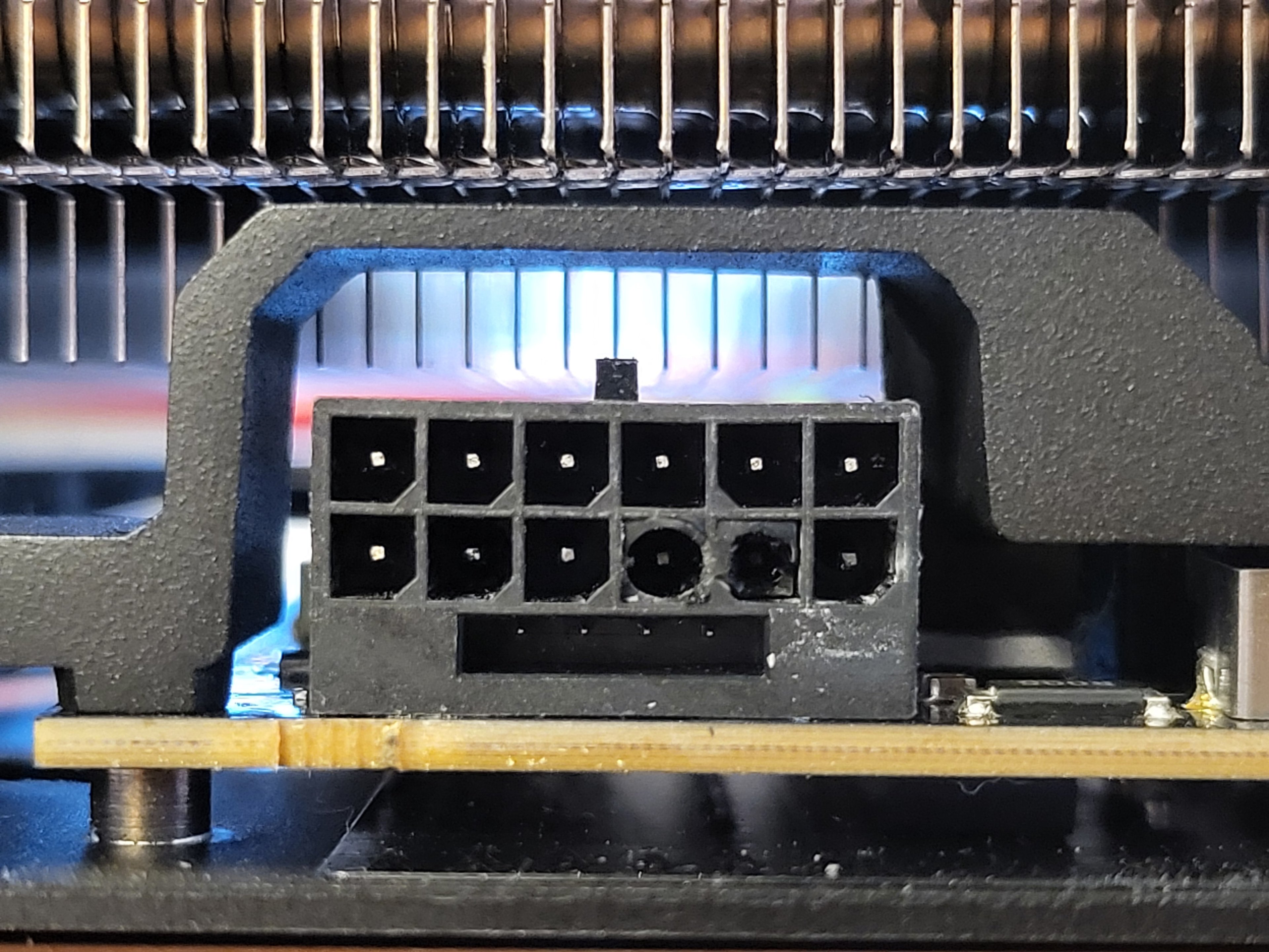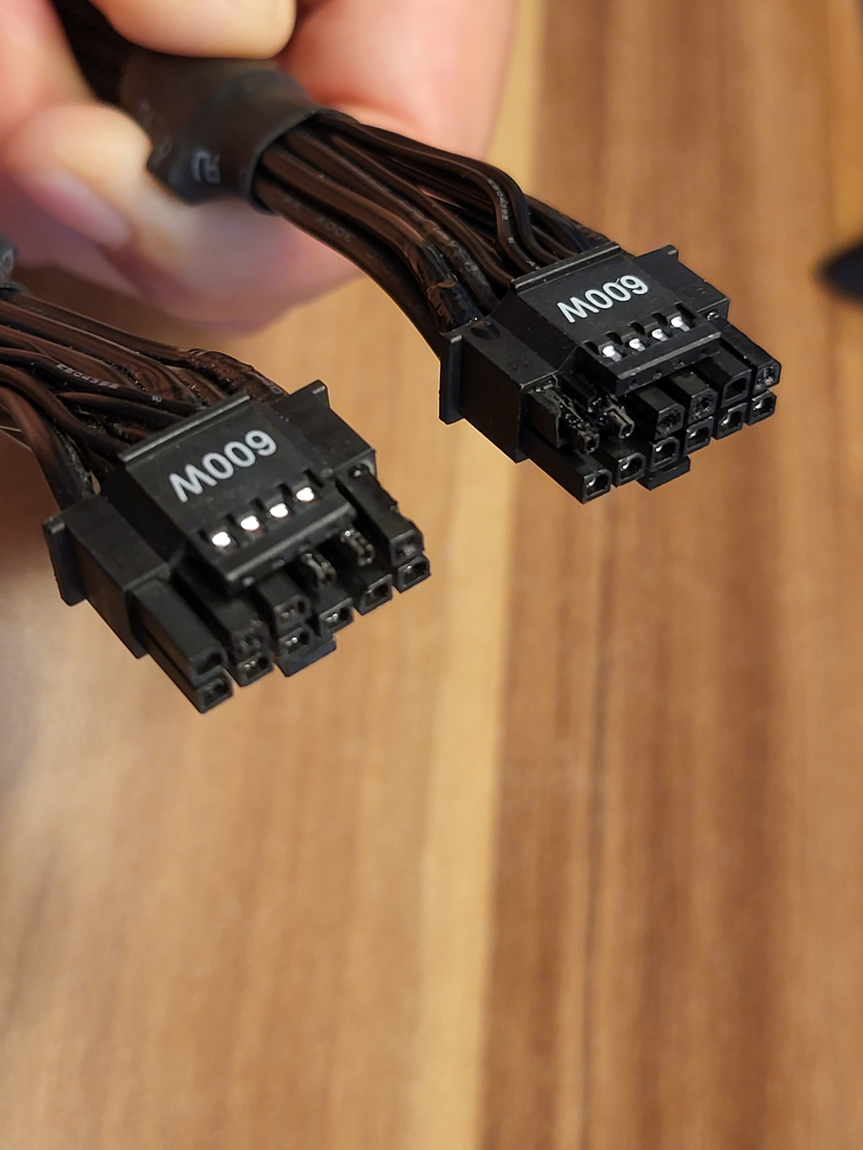 Du musst jetzt eine ordentliche Dokumenation vornehmen, Kabel/GPU und Netzteil aus dem System entfernen, den Verkäufer anschreiben, um einen Gewährleistungsfall anzustoßen und solltest Dir Gedanken darüber machen, ob AMD eine gangbare Alternative darstellt oder Dir eine Nvidiakarte ohne diesen Stecker zulegen. Allerdings kann man natürlich auf dem dritten Bild in Deinem Eingangsbeitrag erkennen, dass die einzelnen Kabel einen sehr deformierten Eindruck machen d.h. ganz offenbar haben Zug und/oder Druck auf das Kabel eingewirkt. So soll dieses Kabel keinesfalls aussehen. Einmal einstecken bis es einrastet und nie wieder anfassen. Am Netzteil würde ich den 12VHPWR Stecker an einem neuen Netzteil gar nicht mehr benutzen, dann lieber den Adapter, der jeder Nvidia Karte beiliegt. Damit verbindet man die ganz normalen PCIe Kabel am Netzteil mit der Nvidia GPU. Jedenfalls ist das Risiko eines Hardwareschadens so schon um 50% reduziert. Sieht zwar schweinehässlich aus, aber allemal sicherer als die Variante, die bei Dir jetzt zum Hardwareschaden geführt hat.
