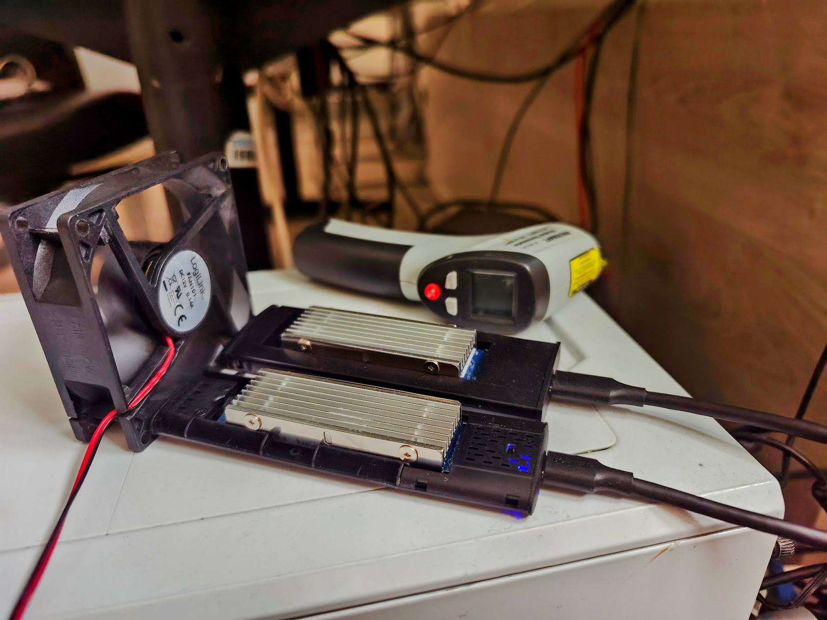 Da wäre in Ordnung aber scheint mit keine Dauerlösung zu sein. Vor allem deshalb nicht, weil die externen M.2. SSD ohne dass man auf die zugreift bereits 45 Grad haben und selbst wenn der PC aus ist (USB wird ja weiterhin versorgt) noch 40 grad.