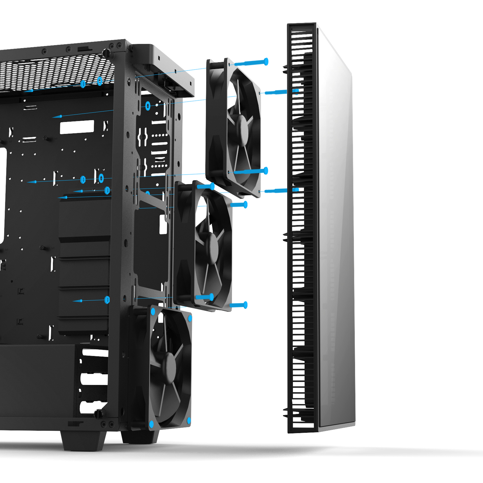 //ach, was mich auch noch interessiert, ich möchte gerne die Lüfter VOR der Lüfterhalterung in der Front anbringen, damit man keine Halterungen an den Lüftern sieht. Hab bisher ein Review gesehen, bei dem das wohl soweit i.O. ging, hat jemand das schon getestet? Passen da problemlos NB Eloops rein?