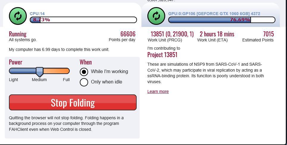 Wenn es gerade keine WUs bei F@H gibt, so kann man über BOINC Aufgaben erhalten.