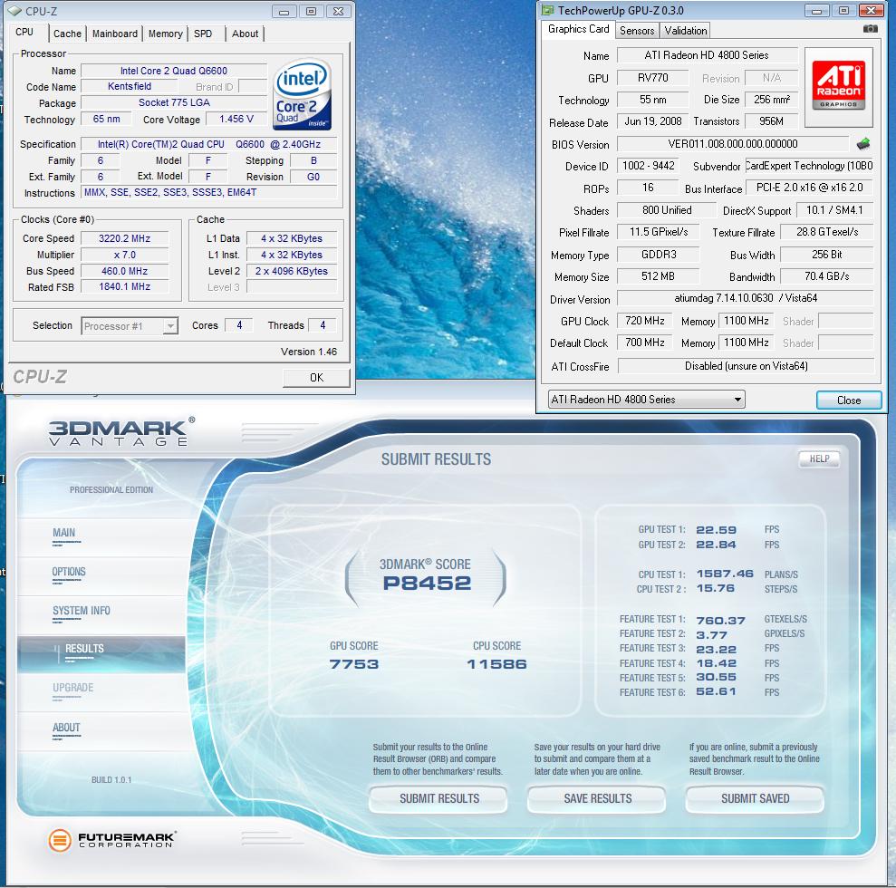 und ja, hab dann auch mal 3dmark Vantage laufen