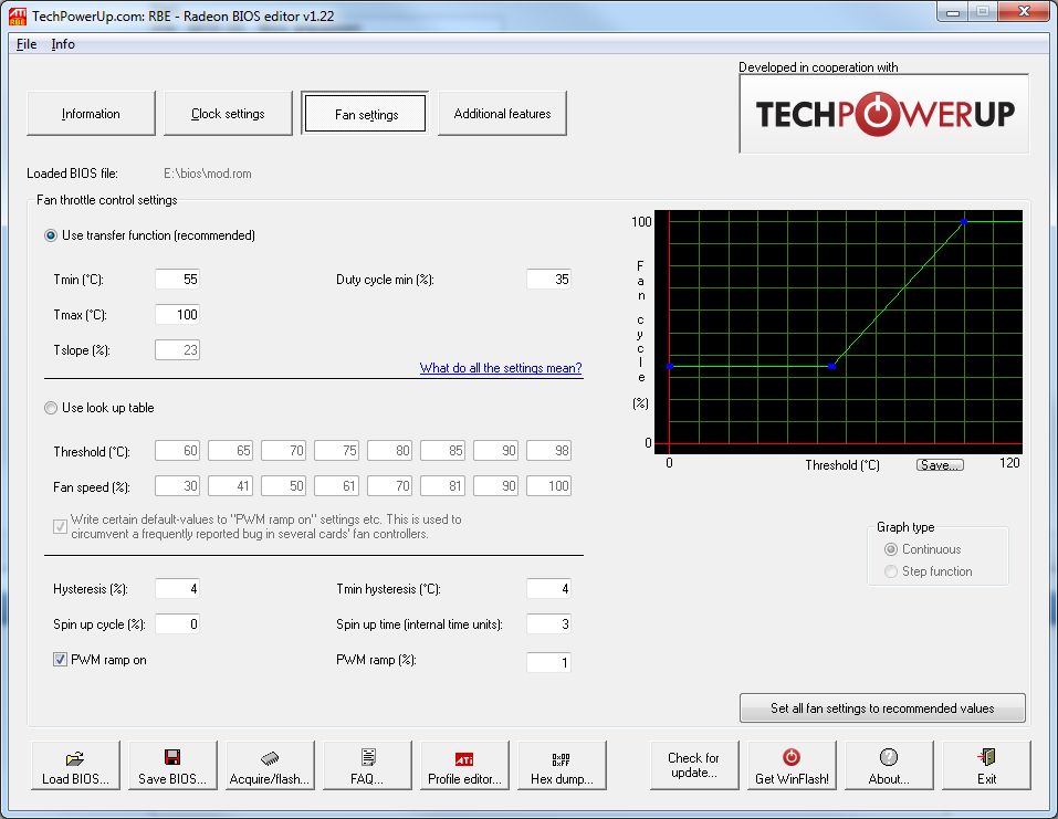Ich habe es nicht geschafft, den Speicher über das Bios zu untertakten, so dass ein stabiler Betrieb möglich ist. Und auch die Taktraten beim Video playback konnte ich nicht zufriedenstellend anpassen. Deswegen kommen jetzt wieder die ATT mit entsprechenden Profilen zum Einsatz. Die Lüftersteuerung übernimmt allerdings das geänderte Bios bzw. halt die Karte selbst, was, wie schon geschrieben, sehr gut funktioniert. Stufenlose/dynamische Regelung ist leider mit den Tray Tools nicht drin. Mit RivaTuner sollte das zwar funktionieren, aber wenn es auch über eine Biosanpassung (relativ einfach) geht, dann ist das natürlich noch besser. Unterm Strich bin ich also recht zufrieden, zumal man wieder was dazu gelernt hat :)
