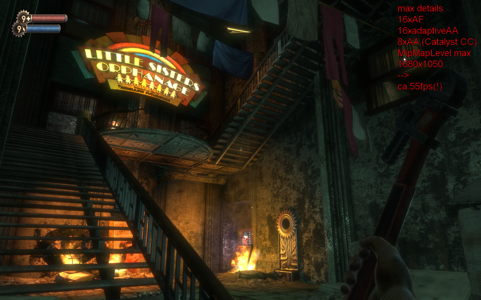 und bricht an Stellen sogar stärker ein als die 3870, sodass ich stellenweise tatsächlich weniger als 40 frames habe ... und zwar immer dann, wenn zwei oder mehr andere Spieler im Bild sind. Und das, ohne CCC, d.h. also minimale treiberseitige Verbesserungen, kein AA und AF nur durch das Spiel. (mit CCC und alles auf "leistung" bringt die gleichen Werte).