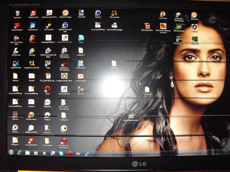 Ich kann dann sooft Einschalten wie ich will, schon das Bios-Post-Logo vom AsRock-Board ist ziemlich zerstört. Was oft hilft, aber nicht immer: Karte einige Sekunden aus dem Slot ziehen.