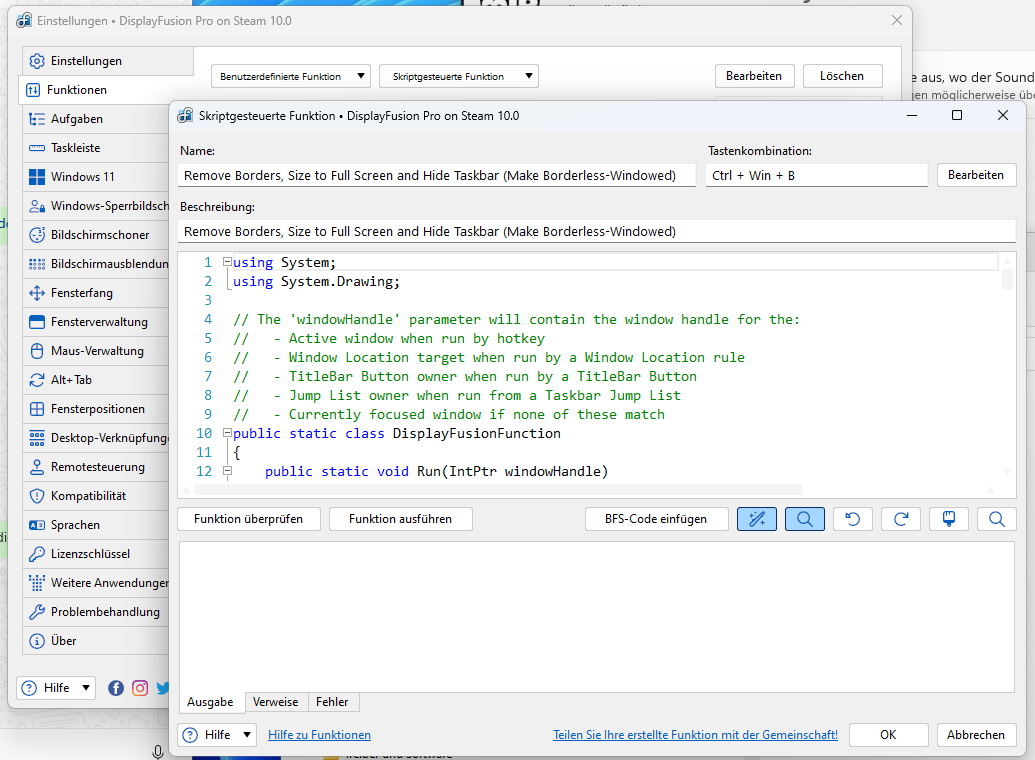 Ich habe heute meinen 49" abgeholt mit dem ich ansich mein Triple-Monitor Setup ersetzen wollte. Nun bin ich aber komplett gefrustet weil einfach keines meiner Spiele läuft.. mein Ziel war es in der Mitte in 3440 x 1440 zu zocken und dann je links discord und browser zu haben... habe mir auch Displayfusion geholt und es so eingeteilt: