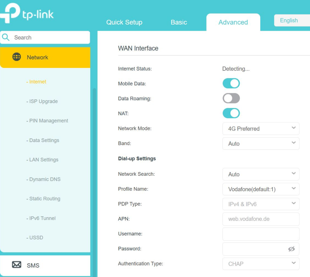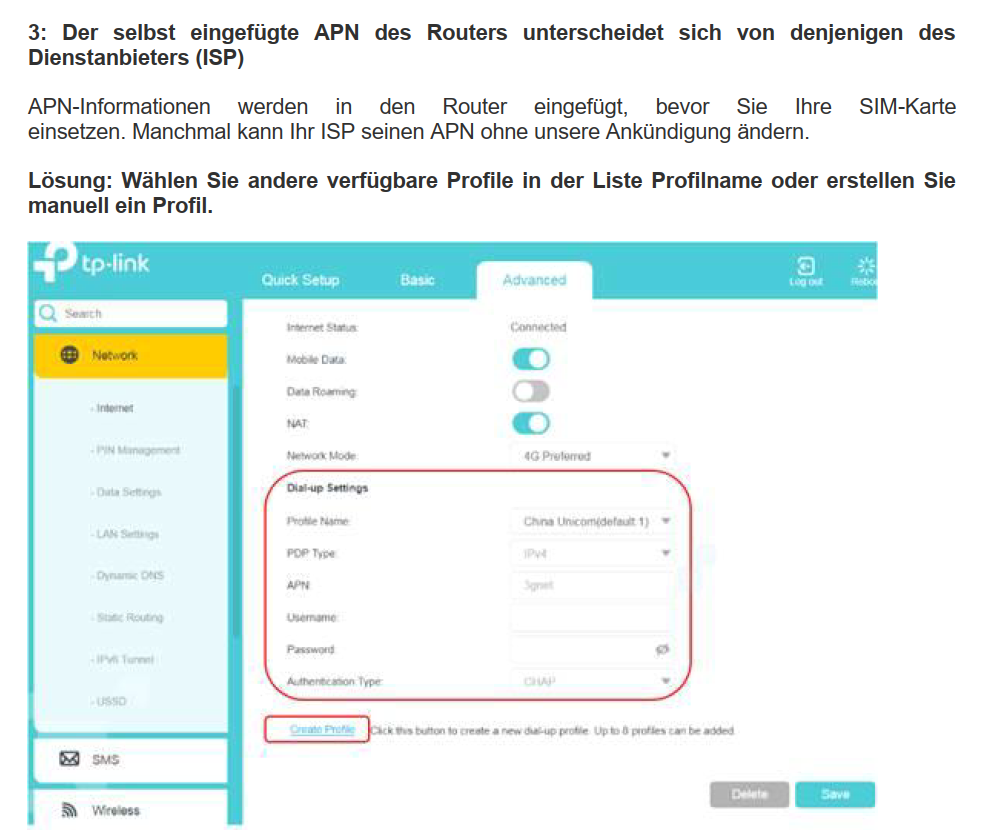 Der MR600 hat aktuelle Firmware drauf und jeder Netzwerkmodus (4G bevorzugt, 4G, 3G) läuft nicht.