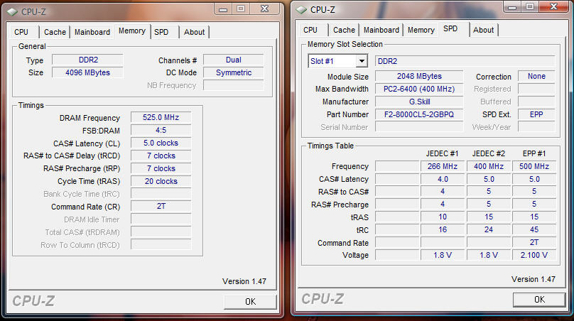 warum hasst du dein RAM überhaupt übertacktet? bei nem FSB von 400 kannst du auch ein DDR2 800 Kit nehmen - Der geschwindigkeitsvorteil beim Ram übertackten ist fast nicht vorhanden. perfect ist es, RAM Takt = FSB * 2