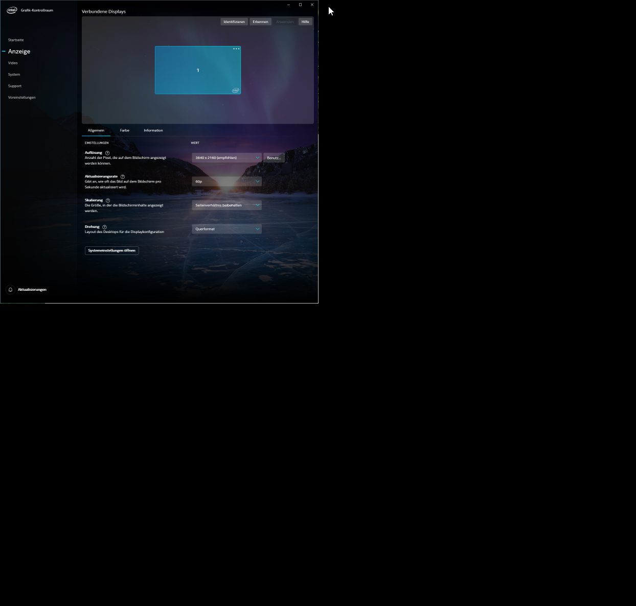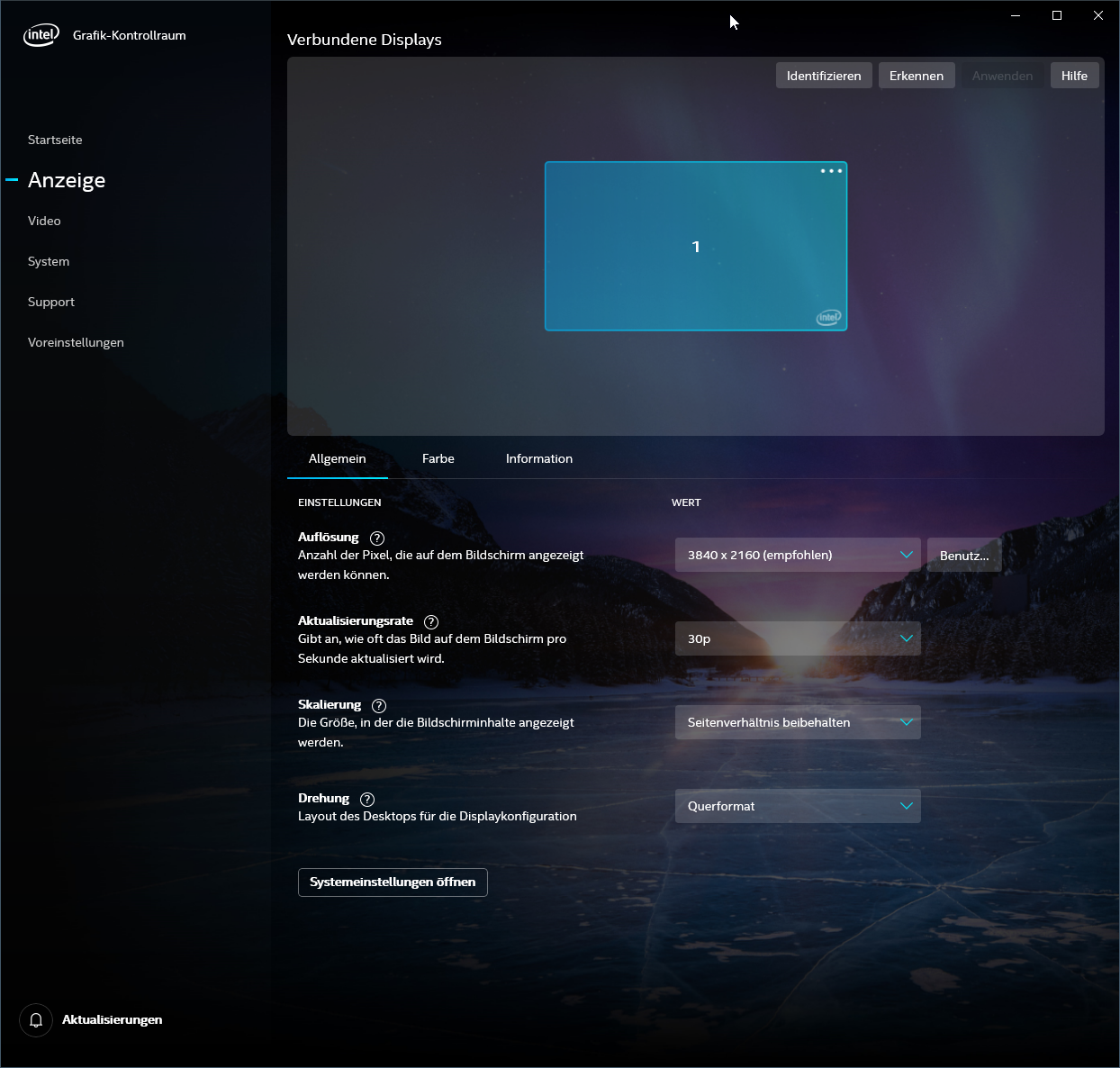 Das Problem ist jedoch, dass bei 30Hz alles top ist und wenn ich 60Hz im Intel Tool (sonst nirgends verfügbar) auswähle, bekomme ich ein verwaschenes bzw. matschiges Bild (siehe Screenshots)