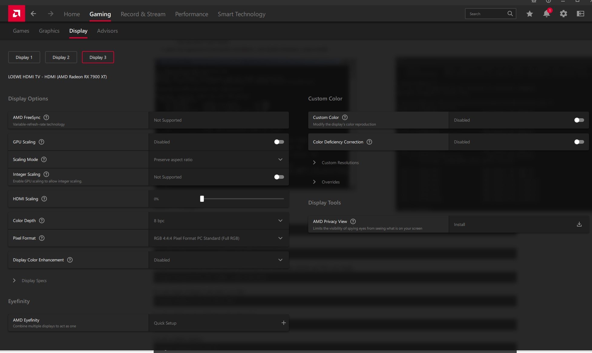 Das blöde ist nun, dass der Fernseher zwar 4k fähig ist, das Kabel das auf jeden Fall auch packen sollte aber das Bild auf dem Fernseher nur in FHD ausgegeben wird. In den Windows Anzeigeeinstellungen kann ich auch allerhöchstens kleinere Auflösungen wählen, nichts größeres als FHD. Im Treiber das gleiche.
