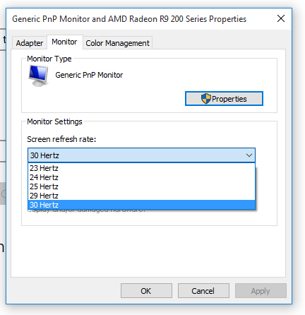 ich habe mir vor kurzem einen Fernseher (Sony KD-55X8509C) gekauft, um ihn als dritten Bildschirm am PC zu nutzen. So weit, so gut, nur stoße ich bei der Nutzung auf ein großes Problem. Meine beiden Monitore übertragen brav ihre respektive Maximal-Auflösung auf 60Hz, während der Fernseher mit maximal 30Hz daher dümpelt: