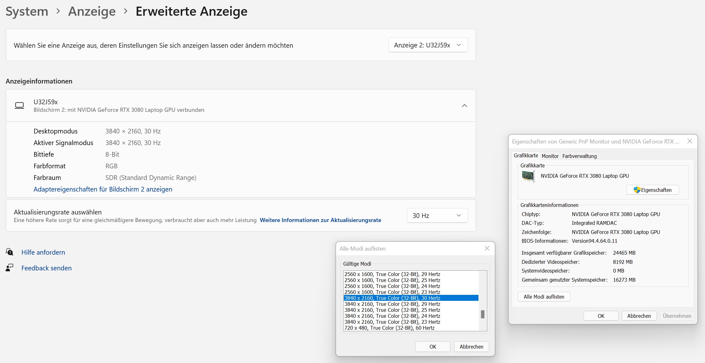 Leider bekomm ich nur 30Hz statt der gewünschten 60Hz am Samsung U32J592.