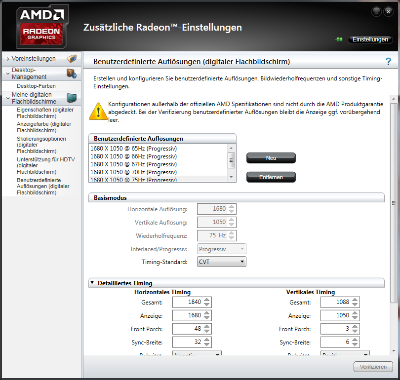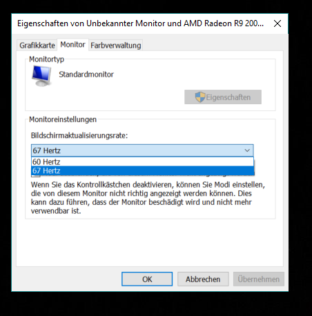 Sobald ich aber nun bei CRU 4K @ 68Hz als neue Auflösungsoption hinzufüge, wird diese nicht mehr von Windows gelistet; auch andere Bildwiederholungsraten über 67Hz werden allesamt nicht gelistet.